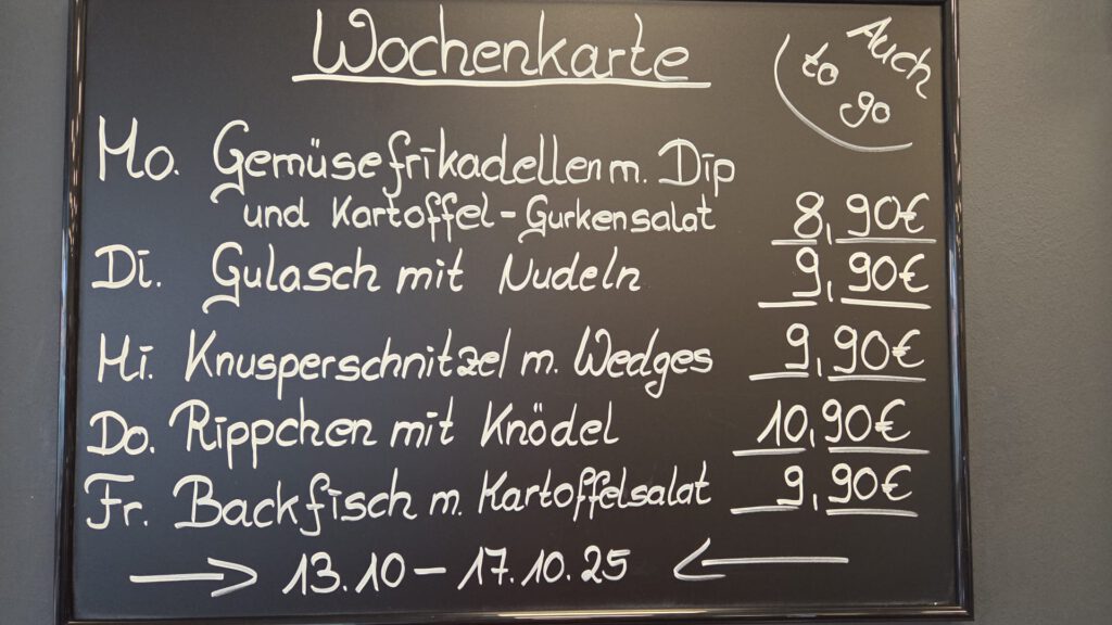 Neben unseren Kuchen und Brotzeiten bieten wir Ihnen täglich ein frisch zubereitetes Mittagsgericht, das wir mit Liebe und regionalen Zutaten für Sie kochen. Jeden Tag erwartet Sie ein neues, leckeres Gericht, das perfekt zu einem schnellen Mittagessen oder einer ausgiebigen Pause passt.